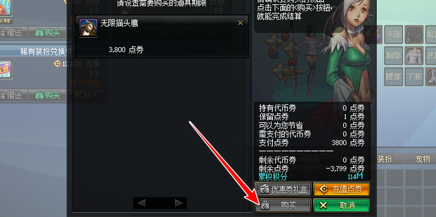 答:地下城与勇士游戏中的无限猫头鹰,只能在商城使用点券进行购买。
